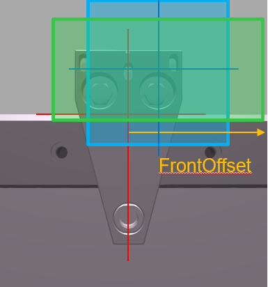 FrontOffset: Distance from the center point of the carrier to the front edge of the complete unit consisting of carrier, tool and product