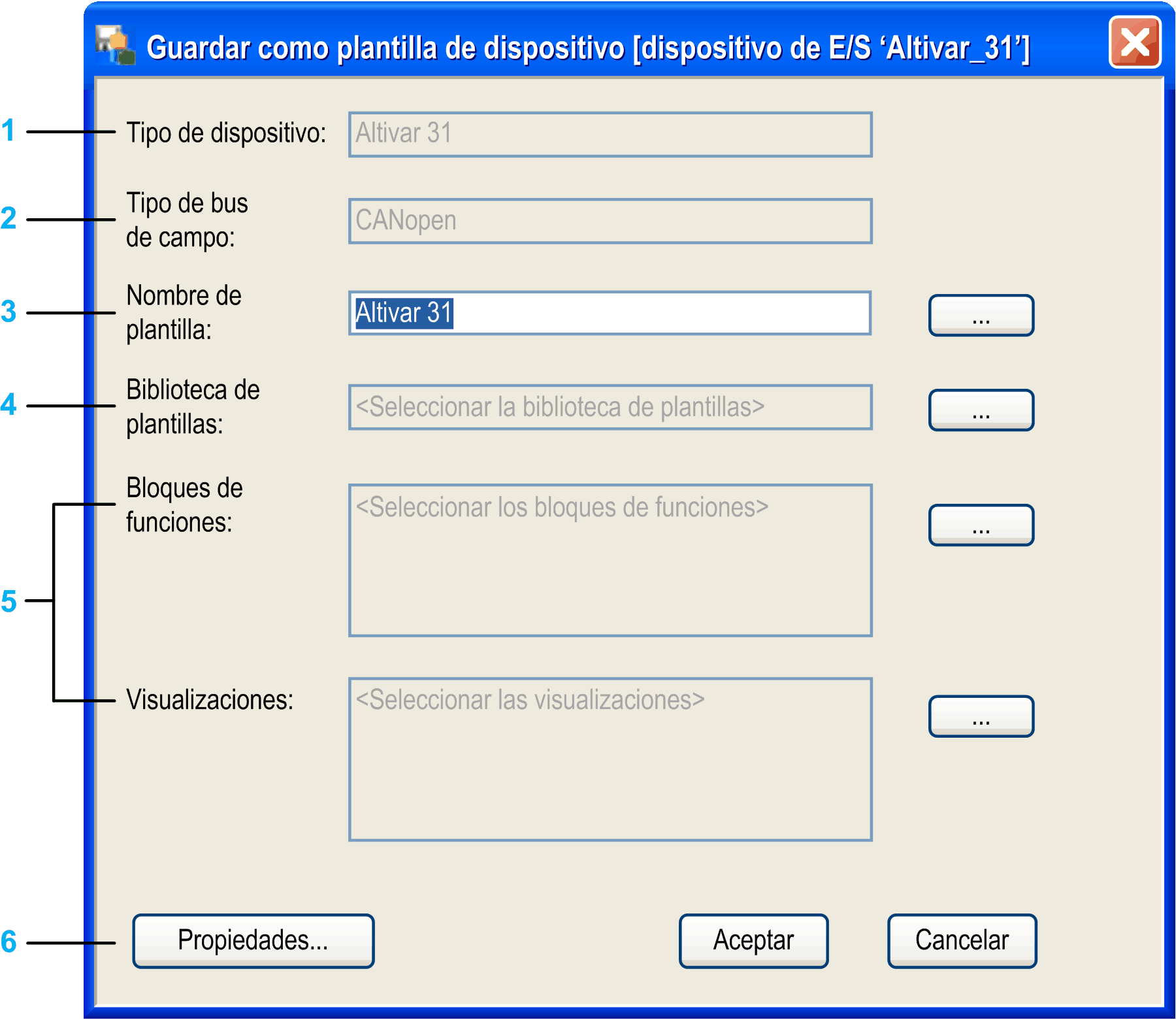 3 El nombre de la plantilla de dispositivos que se creará (inicialmente, el nombre del dispositivo de campo original).