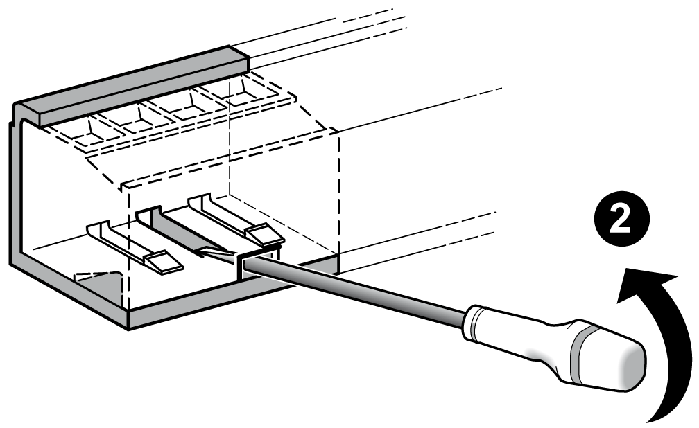 Presione con un destornillador a través del orificio frontal del bloque de terminales: