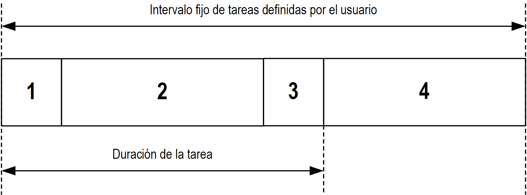 A una tarea cíclica se le asigna un tiempo de ciclo fijo con el ajuste de intervalo de la sección Tipo de la subficha Configuración de esa tarea. Cada tipo de tarea cíclica se ejecuta así: