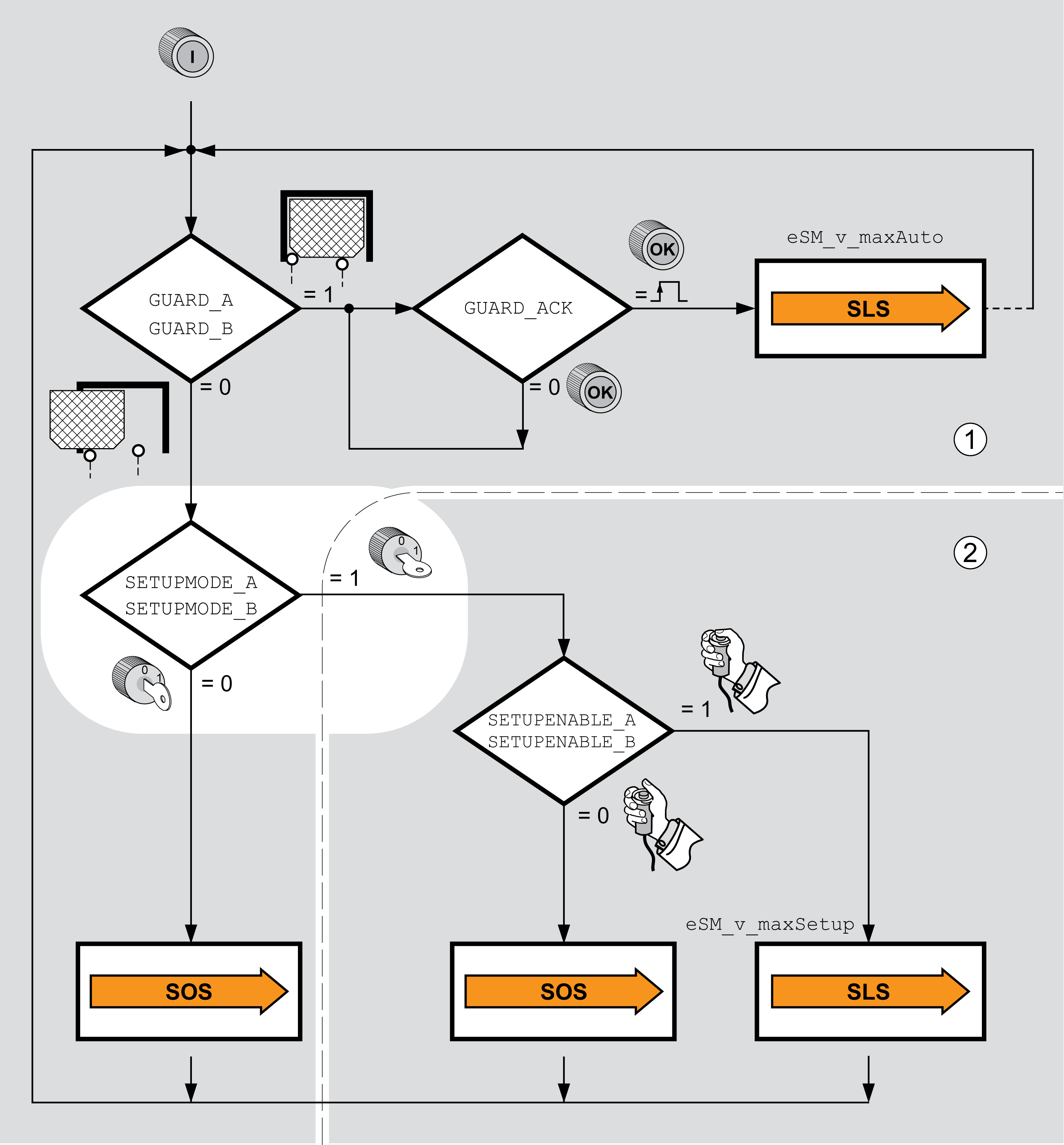 Les modes de fonctionnement de la machine suivants sont différenciés pour le module de sécurité eSM (voir aussi EN 12417) :