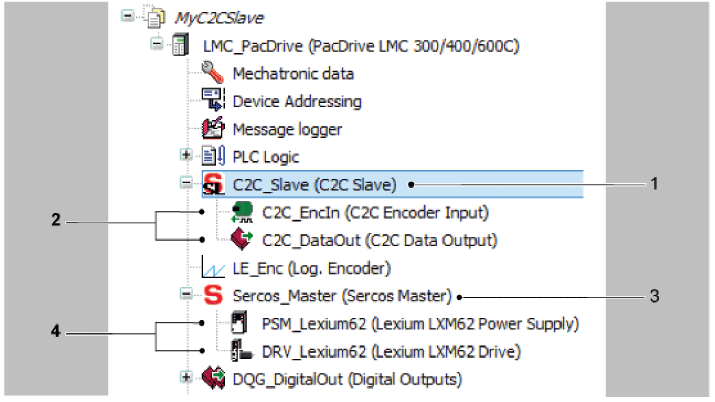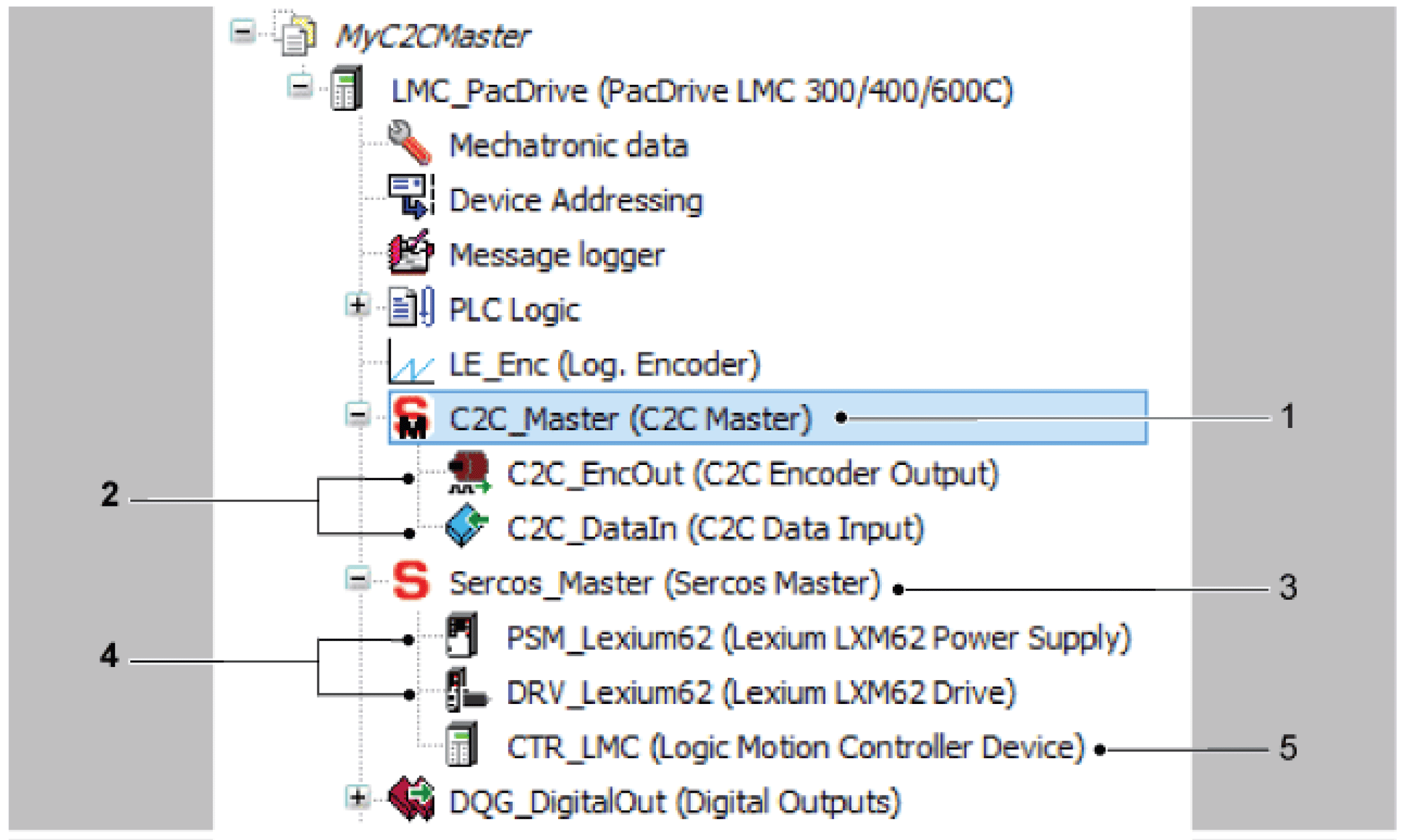 C2C Master (1) has been added under the PacDrive LMC 300/400/600C object