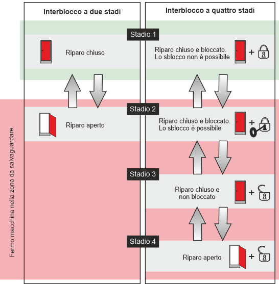 dispositivi di interblocco con bloccaggio del riparo (interblocco a quattro stadi).
