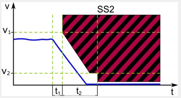 Specifies the duration in milliseconds after which speed zero has to be achieved (t2 in the figure) and SS2 standstill monitoring (similar to SOS) is activated.
