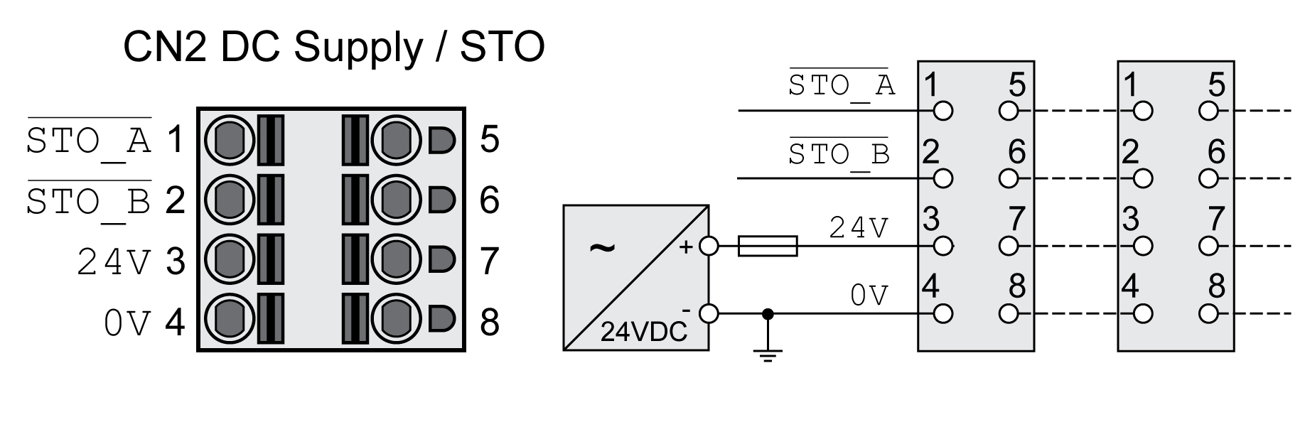 24 Vdc 控制电源的参考电位以及 STO 的参考电位