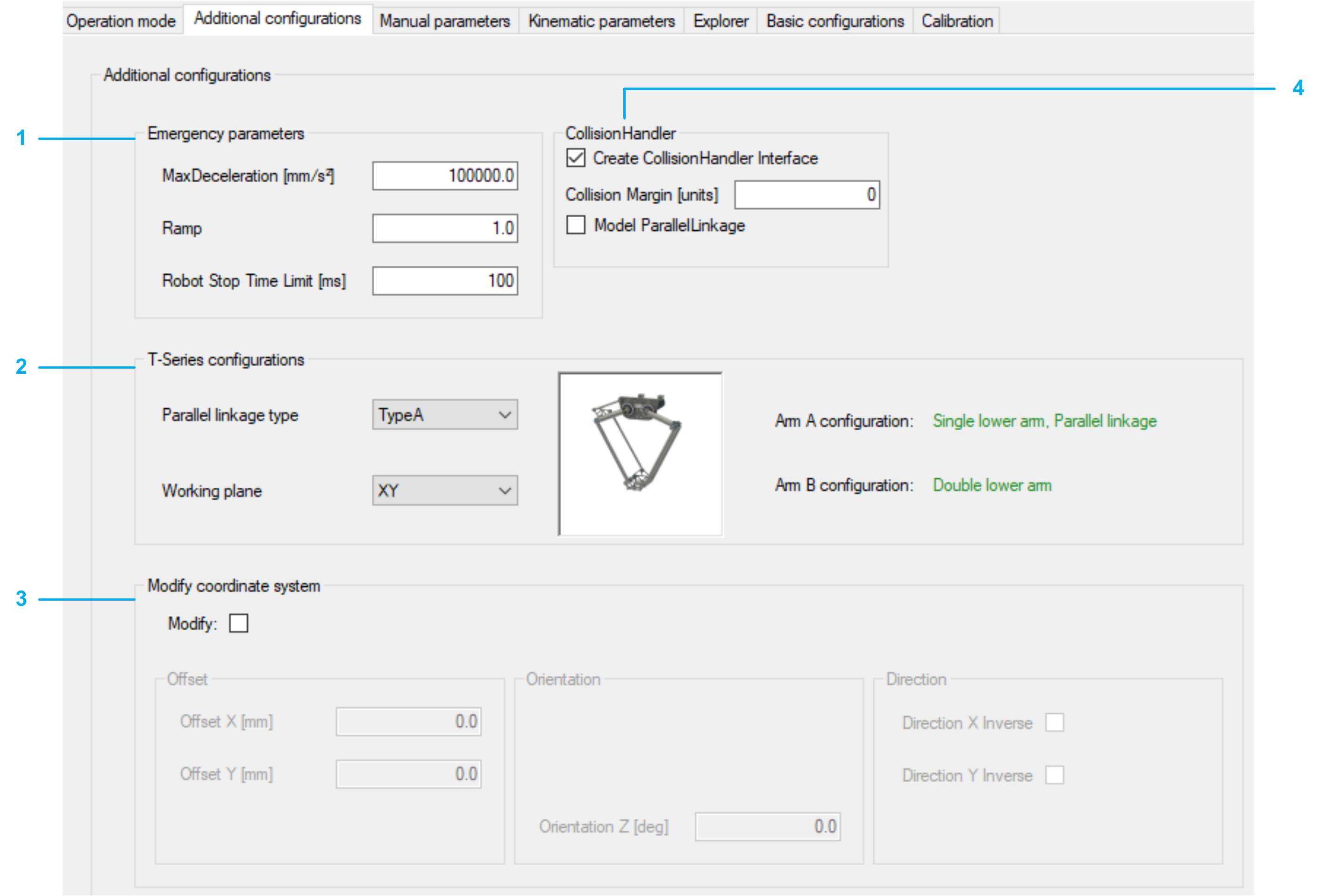 Detailed information can be found under: ET_RobotTSeriesConfiguration in SchneiderElectricRobotics Parameters Library Guide. |