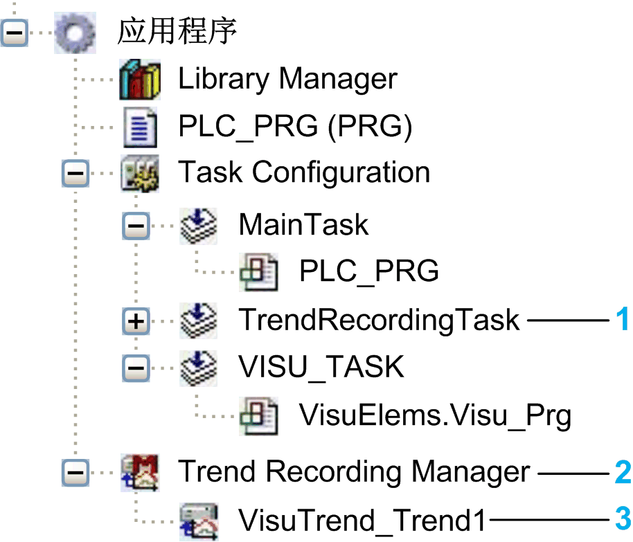 对象通过执行的任务来扩展应用程序。在中,每个节点只有一个子节点可用。任务调用以下程序:VisuTrendStorageAccess.GlobalInstances.g_TrendRecordingManager.CyclicCall。