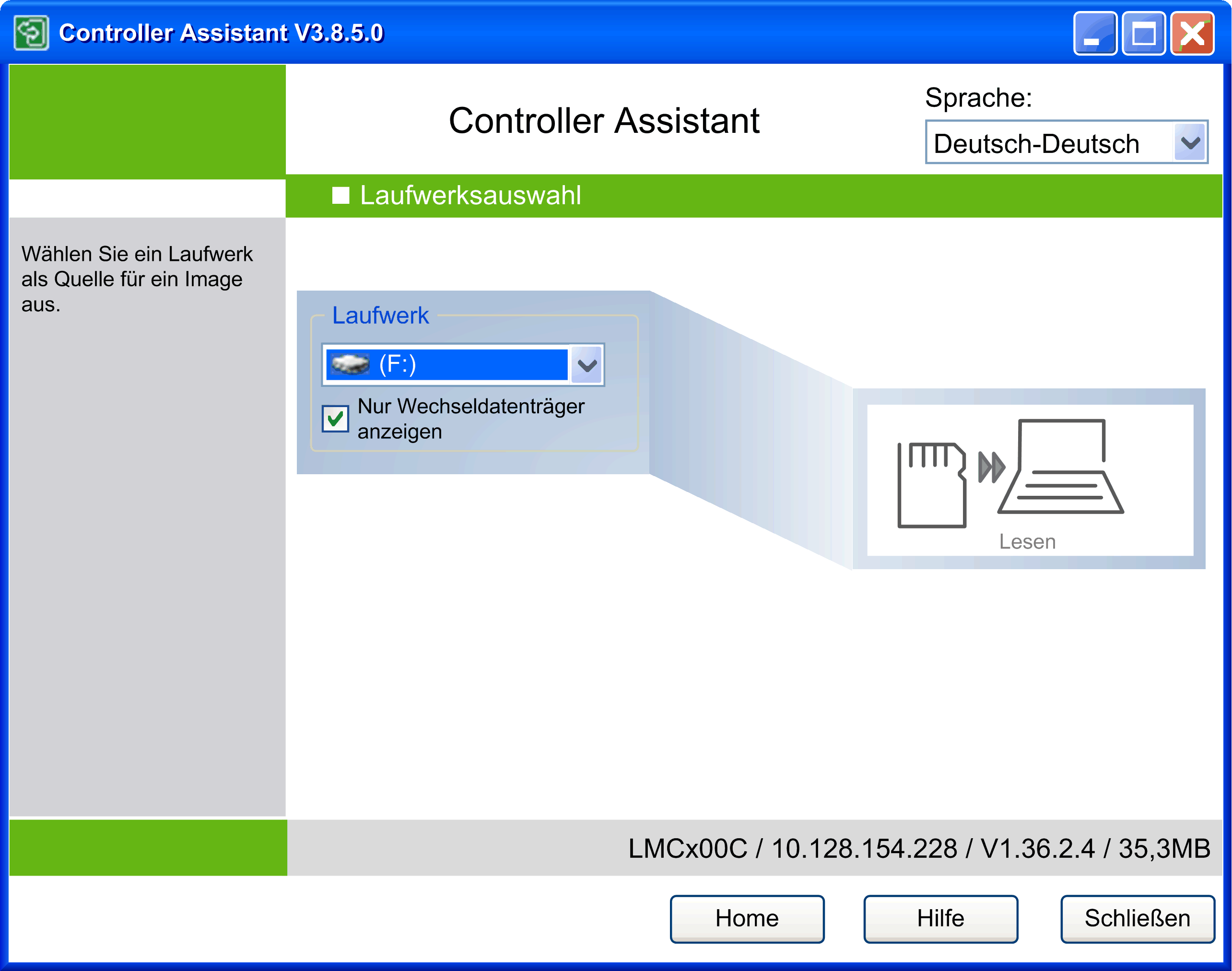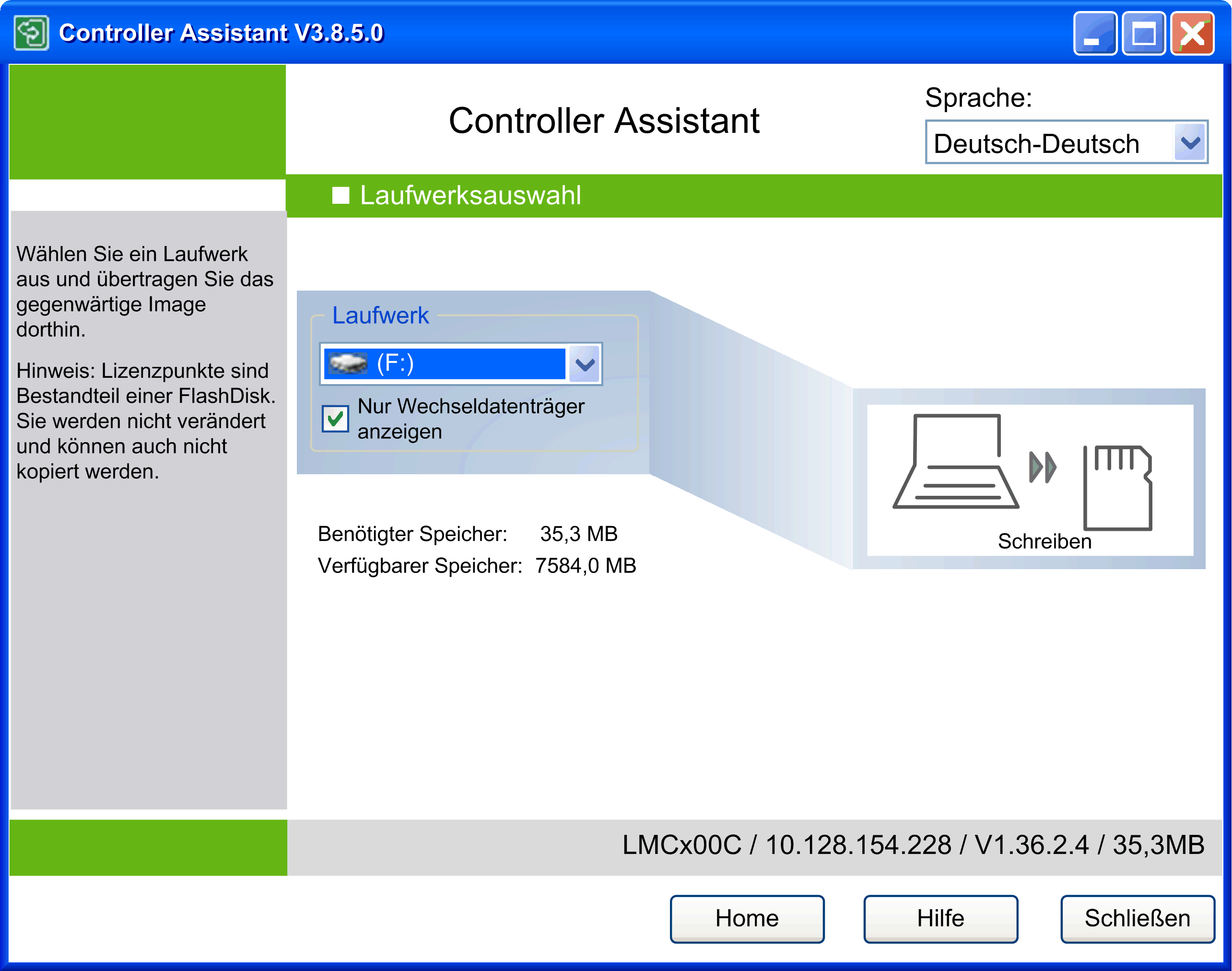 Klicken Sie auf die Schaltfläche , um das Image in Controller Assistant zu laden.