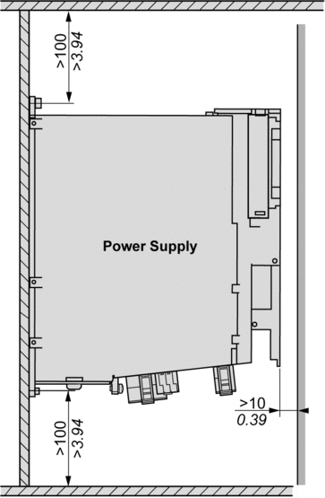 Erforderliche Abstände im Schaltschrank für den Lexium 62 Power Supply: