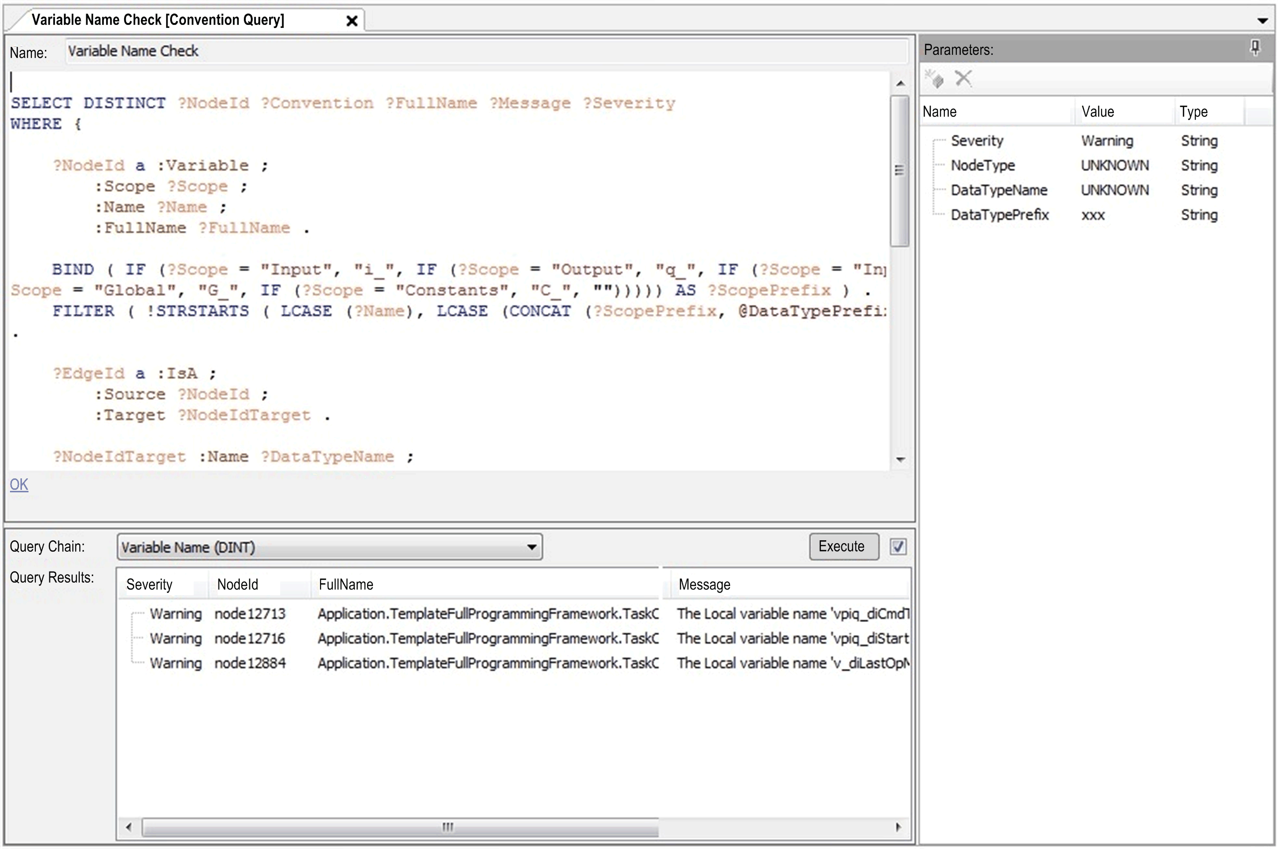 At the bottom of the query editor, detected SPARQL syntax errors are displayed. Click this message to jump to the detected syntax error in the query editor. |