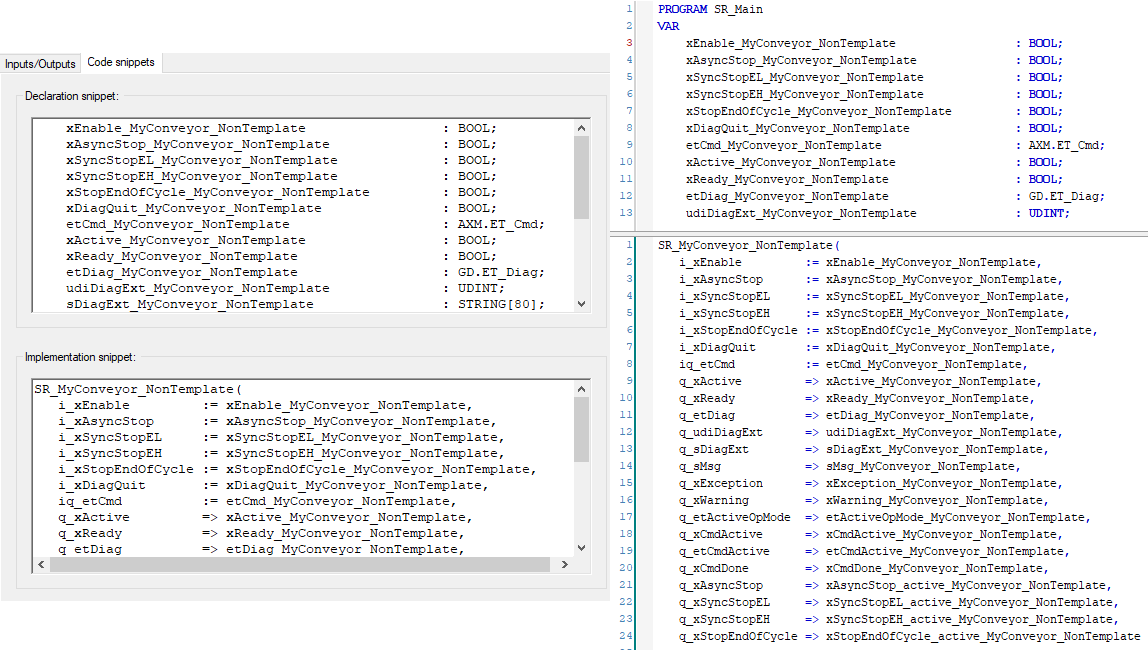 If you are using PacDrive 3 Template, it is typically inside SubModules_Action (of SR_MainMachine or equivalent in a node module) which typically uses the FBD language. To use the code snippets of , you can use the EXECUTE box to add code in structured text.