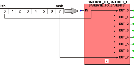 This function block splits one (SAFE)BYTE input variable to eight (SAFE)BOOL output variables.
