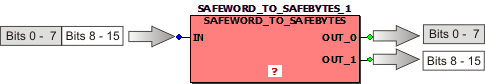 Bit valence: Bits 0 to 7 of the input Word are output as Byte variable at OUT_0. Bits 8 to 15 of the input Word are output as Byte variable at OUT_1.