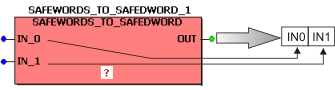 Bit valence: Bits 0 to 15 of the input DWord are output as Word variable at OUT_0. Bits 16 to 31 of the input DWord are output as Word variable at OUT_1.