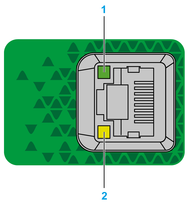 This graphic shows RJ45 connectors status LEDs: