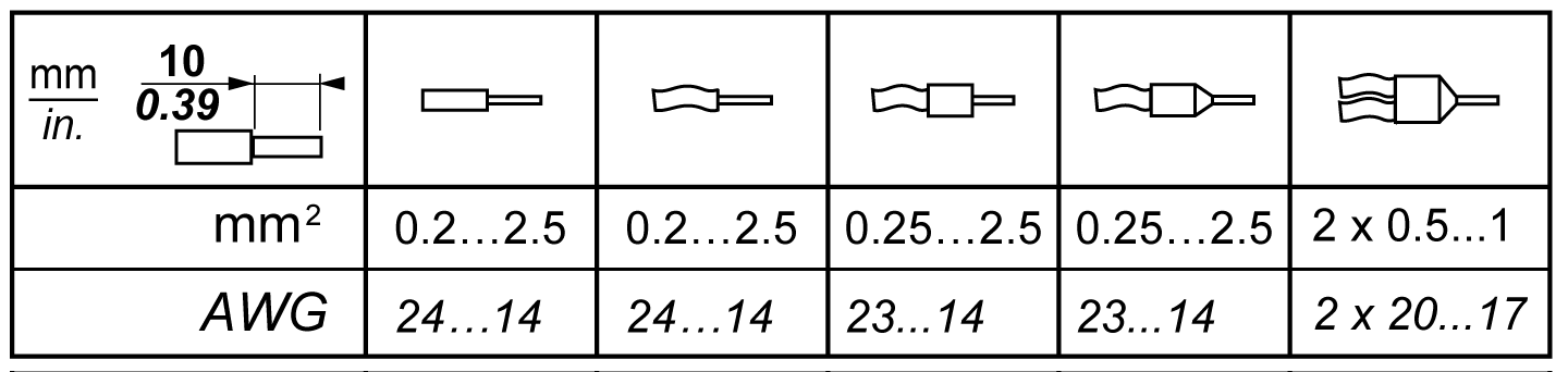 Do not insert more than one wire per connector of the spring terminal blocks unless using a double wire cable end (ferrule).