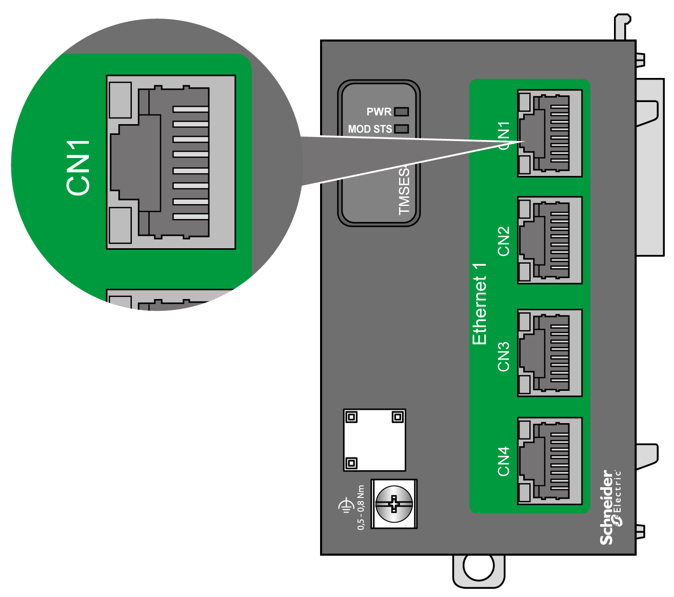 The following illustration shows the Ethernet RJ45 connector pin assignment: