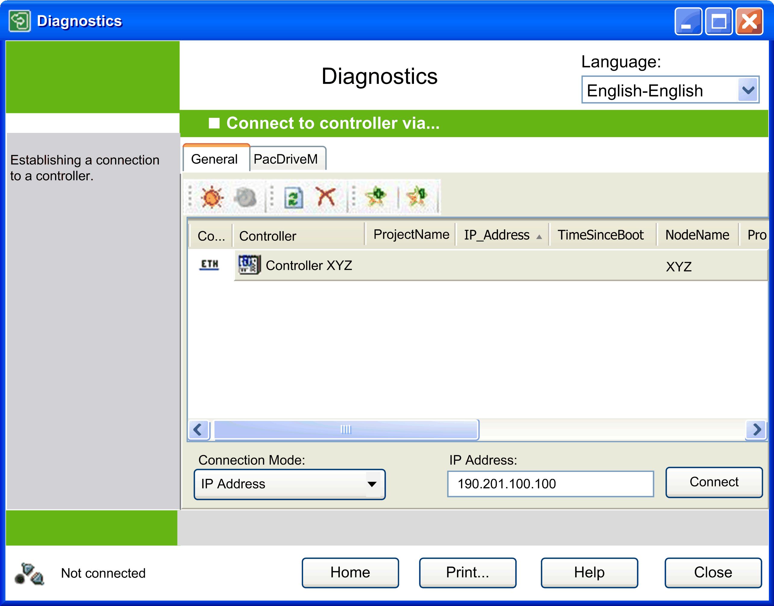 Double-click a controller from the list or enter missing connection data if not listed. Then click to collect data from the given controller.