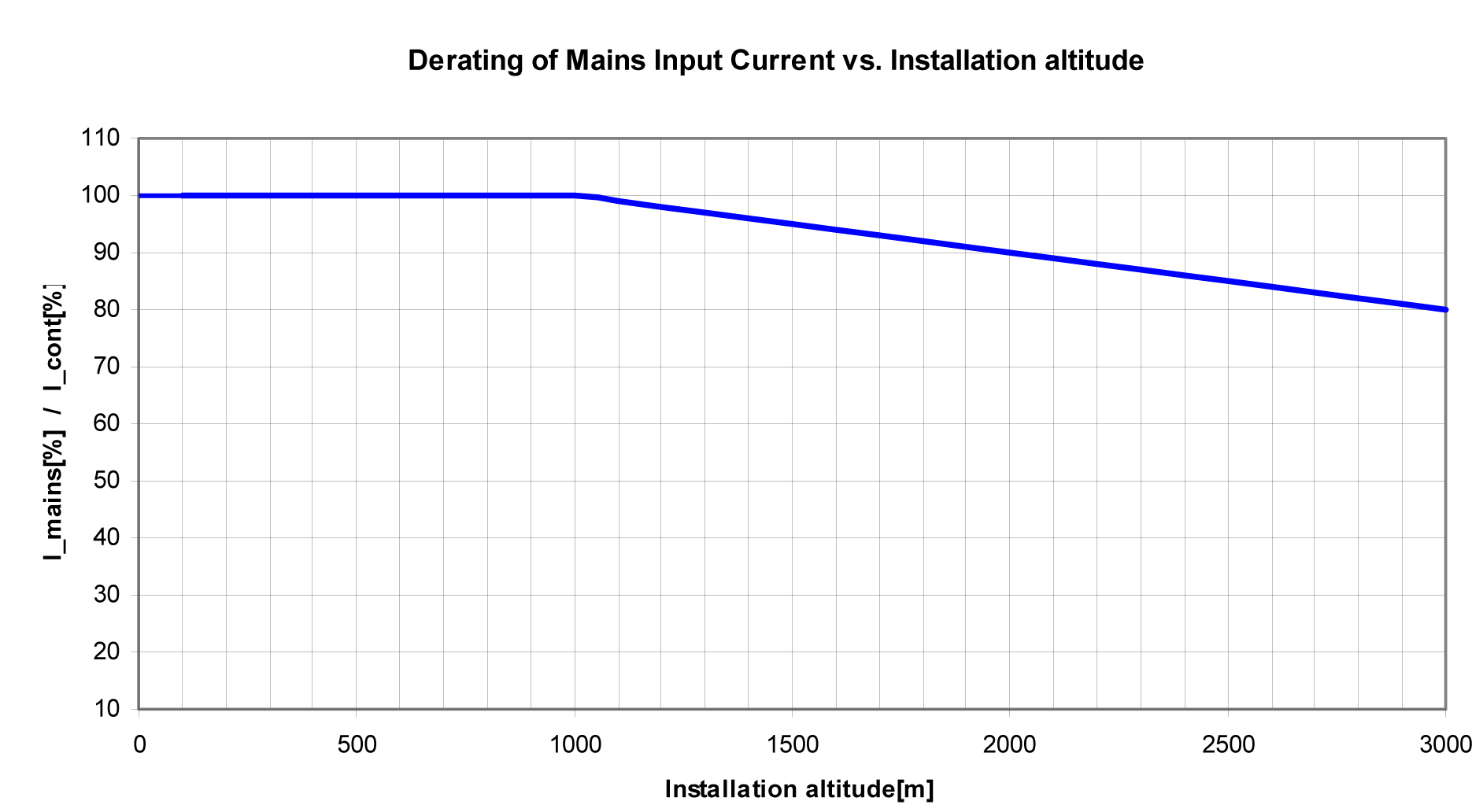 NOTE : Pour calculer le courant continu maximal en fonction de l'altitude d'installation requise, multipliez les valeurs par le courant nominal à 40 °C (104 °F).