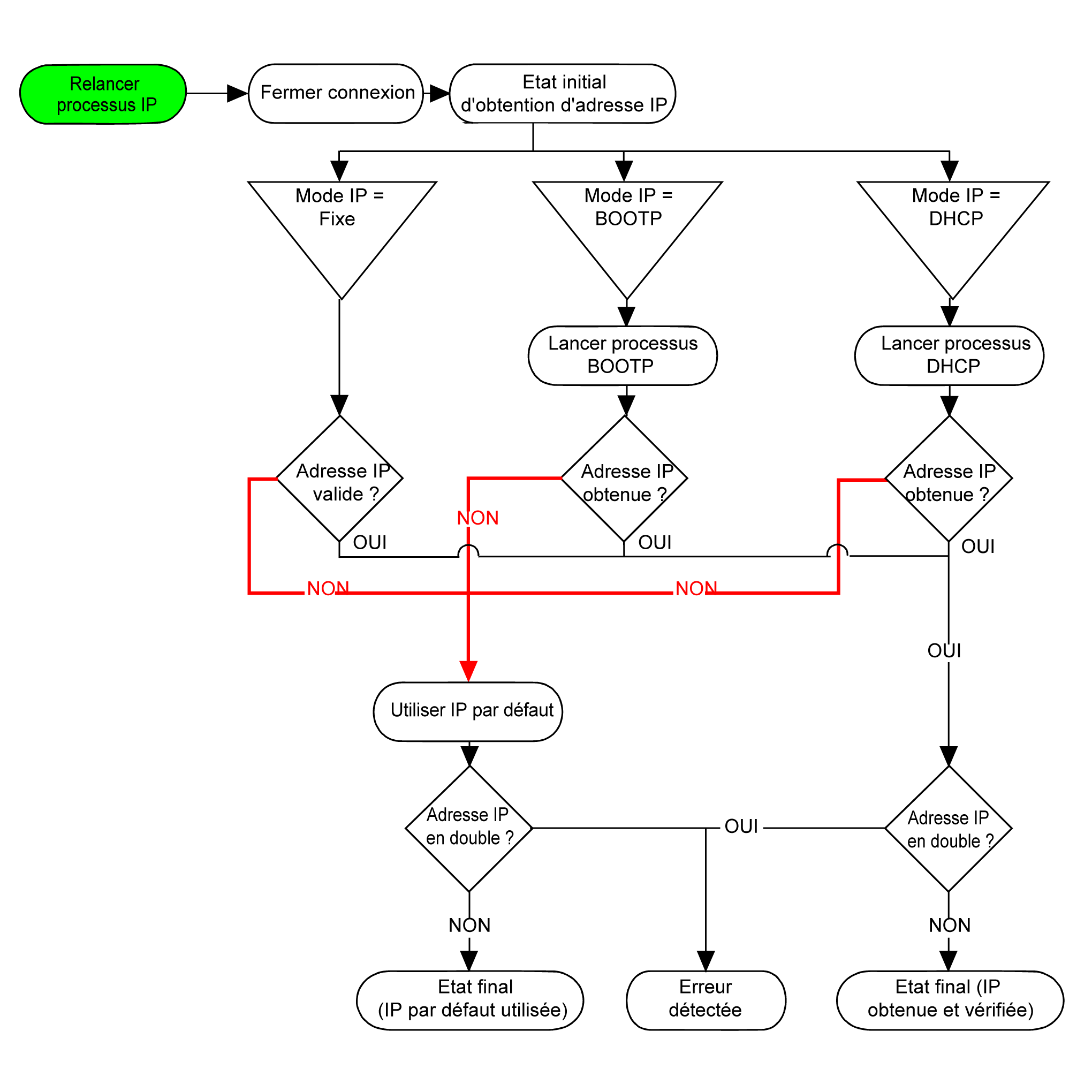 La procédure d'adressage IP redémarre automatiquement dans les cas suivants :