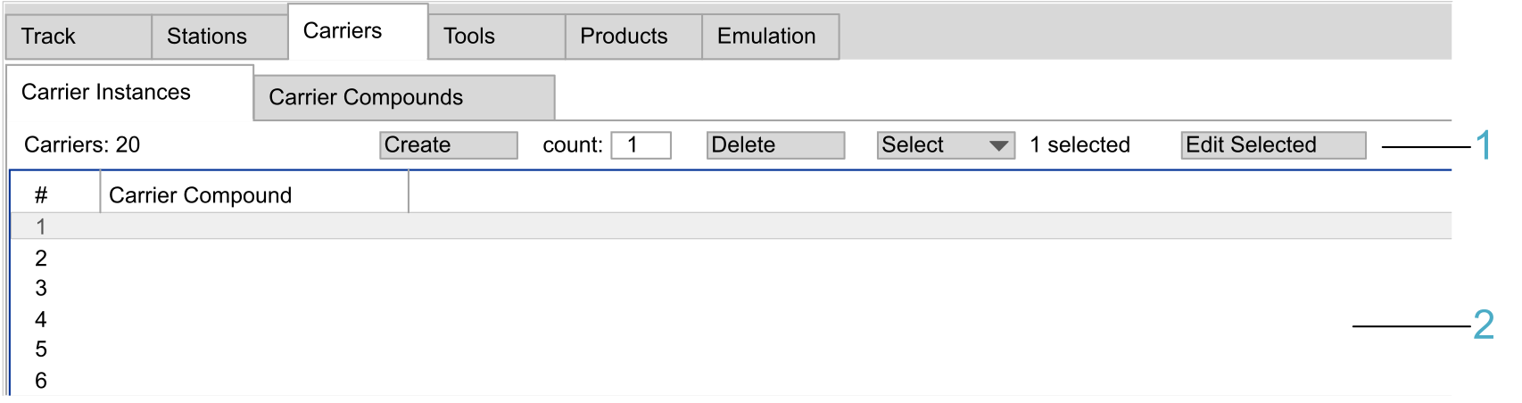 Enter the number of carriers to be created in the count field and click the Create button. Result: The carrier instances are displayed in the table view. |