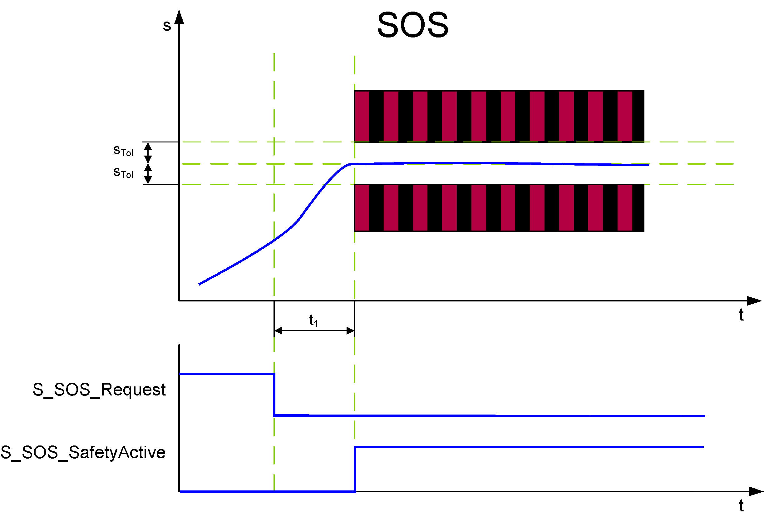 If the parameterized STol values are not exceeded after t1, the function block switches S_SOS_SafetyActive to SAFETRUE.