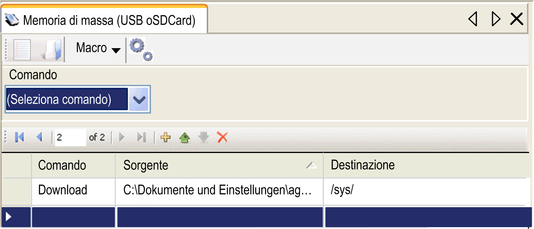 Selezionare i comandi per lo script da eseguire sul controller dalla casella di riepilogo oppure selezionare macro già disponibili dall'elenco . |