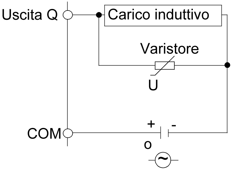 A seconda del carico, può essere necessario predisporre un circuito di protezione per le uscite dei controller e di determinati moduli. I carichi induttivi in CC possono generare riflessioni di tensione con conseguenti overshoot potenzialmente dannosi per i dispositivi di uscita o in grado di ridurne la vita utile.