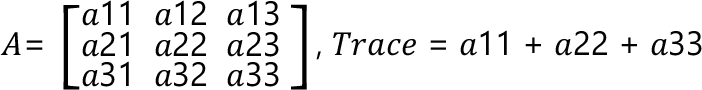 Given a 3D input matrix, the function returns the trace of such matrix. The trace of a squared matrix is defined as the sum of the elements on its main diagonal.
