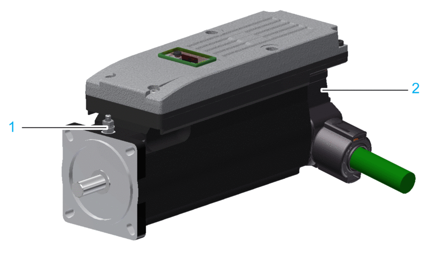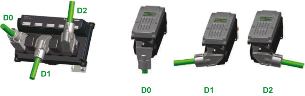 D2 顶部 (Lexium 62 Distribution Box) 或右侧 (Lexium 62 ILM) 连接。