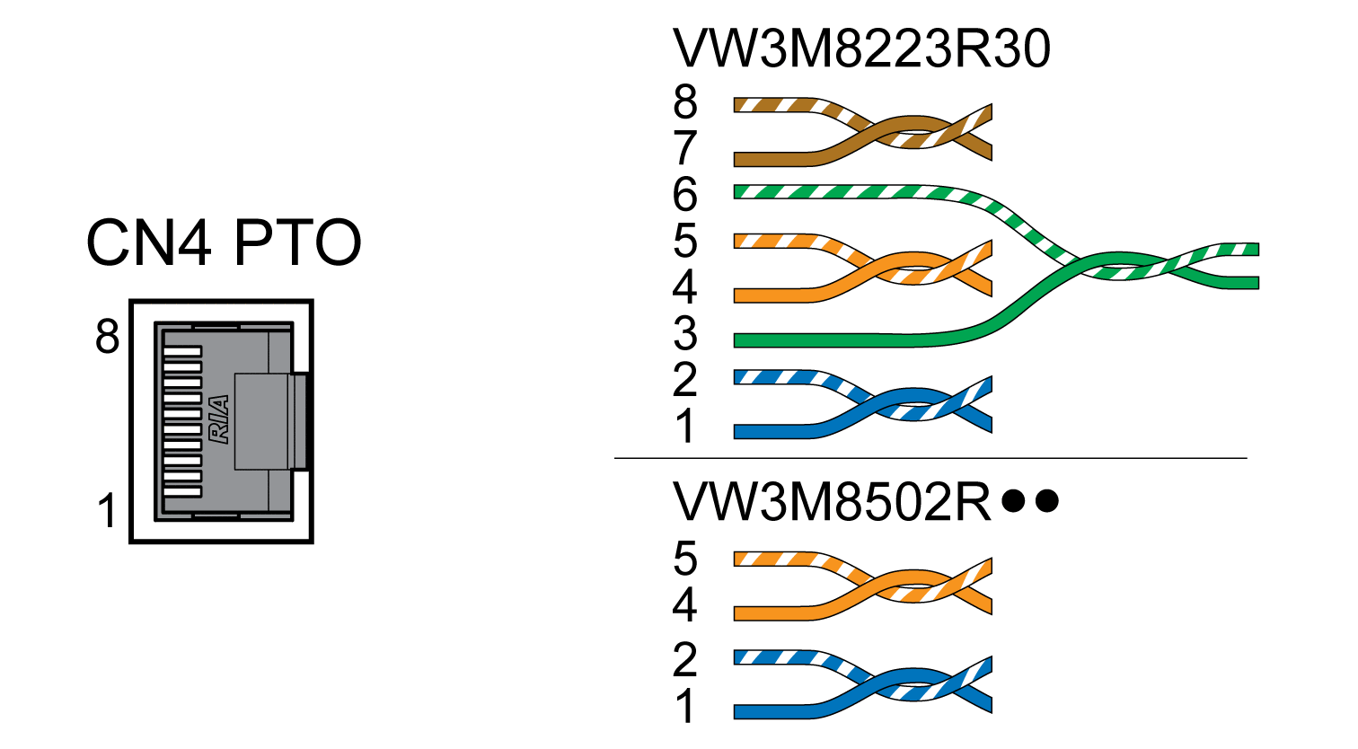 PTO(连续脉冲输出,CN4)输出由 5 V 信号引出。受参数 PTO_mode 影响的是 ESIM 信号(编码器模拟)或逻辑实现的 PTI 输入信号(P/D 信号、A/B 信号、CW/CCW 信号)。PTO 输出信号可作为 PTI 输入信号用于另一台驱动器。信号电平符合 RS422,请参阅 PTO 输出 (CN4)。即使 PTI 输入信号是 24 V 信号,PTO 输出也会提供 5 V 信号。