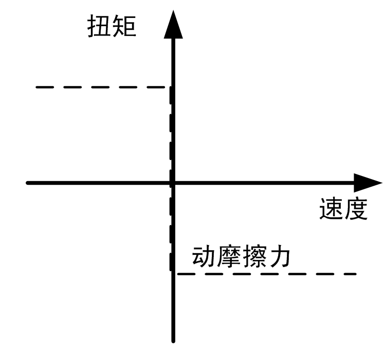 施加到输入轴上的扭矩。 该参数可为正值或 0。 运动过程中(当速度不为 0 时),该扭矩作用方向与运动方向相反。运动过程中,该扭矩的绝对值为常数,与速度无关。 在静止时(速度 =0),该扭矩不存在。 这种扭矩类型的典型示例为固体之间的动态摩擦。
