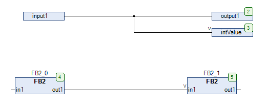 以下示例显示,可以将输入连接到输出,以及将功能块输入连接到功能块输出。