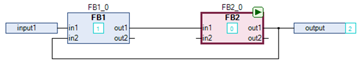 执行此命令,可将选定元素定义为包含反馈的节内的起始点。在 CFC 编辑器中,反馈内的起始点标记有 符号。此元素分配有反馈内执行顺序中的最低编号。运行时,从这个元素开始进行反馈处理。