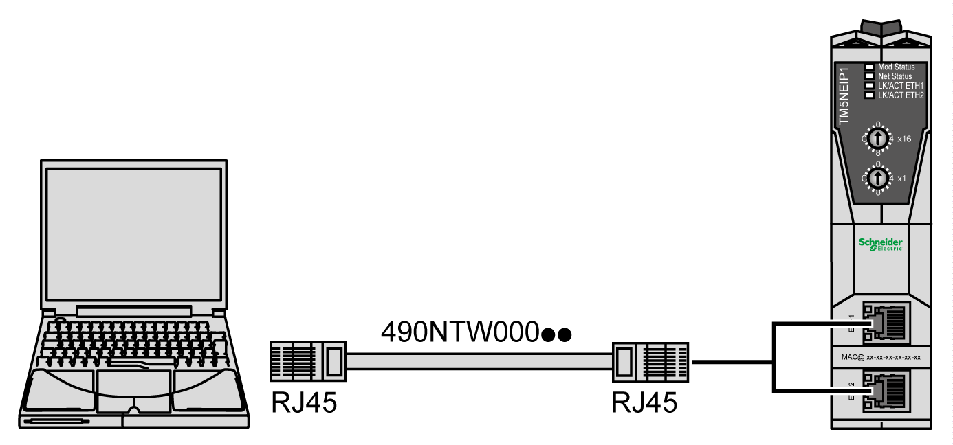 使用 Ethernet 端口将 TM5NEIP1 连接到计算机。