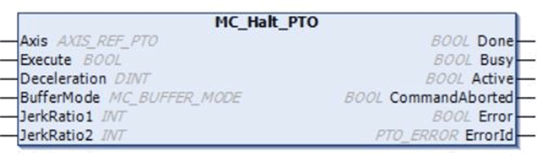 由于另一个移动命令或检测到错误而中止,功能块执行完成。 |