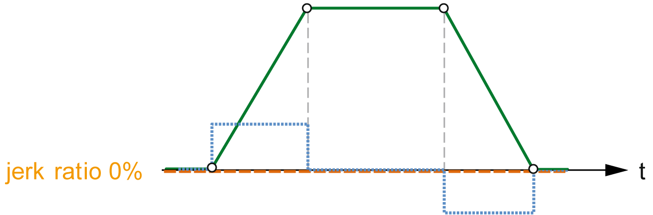 将 jerk ratio 参数设置为 0 时,加速度/减速度斜坡将呈梯形。