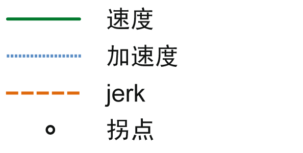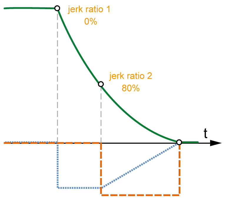 JerkRatio 参数值对于加速度和减速度通用,因此凹凸时间相等。