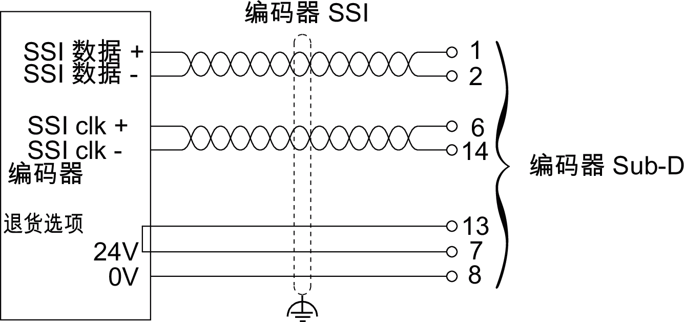 编码器接口的电源通过嵌入式数字输入电源由控制器提供。