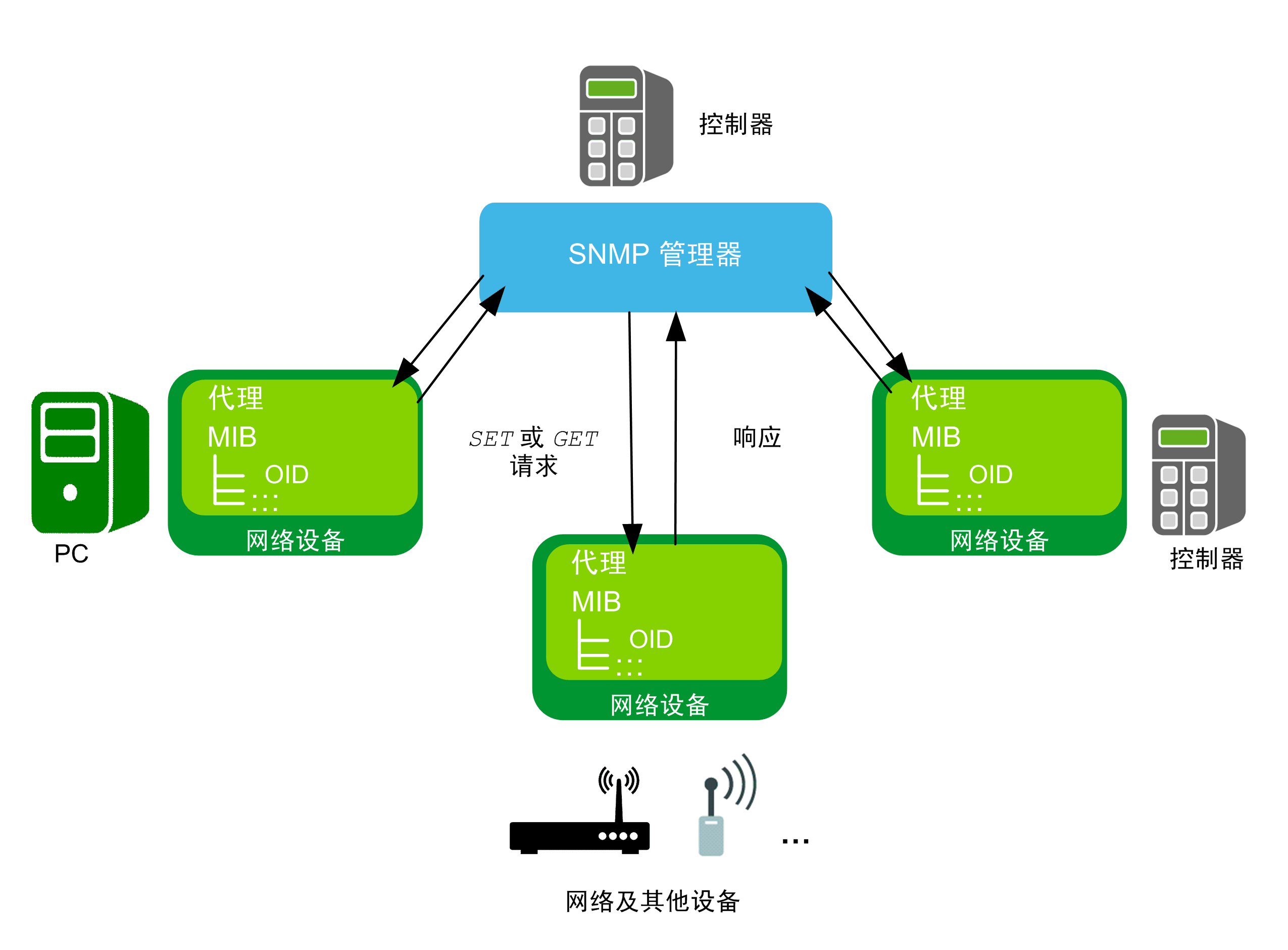 SnmpManager 库执行互联网标准协议 SNMP (Simple Network Management Protocol) 的管理器。SNMP 管理器让您的控制器能够收集并组织与 IP(互联网协议)网络上的被管理设备有关的信息,并修改这些信息以改变设备的配置。