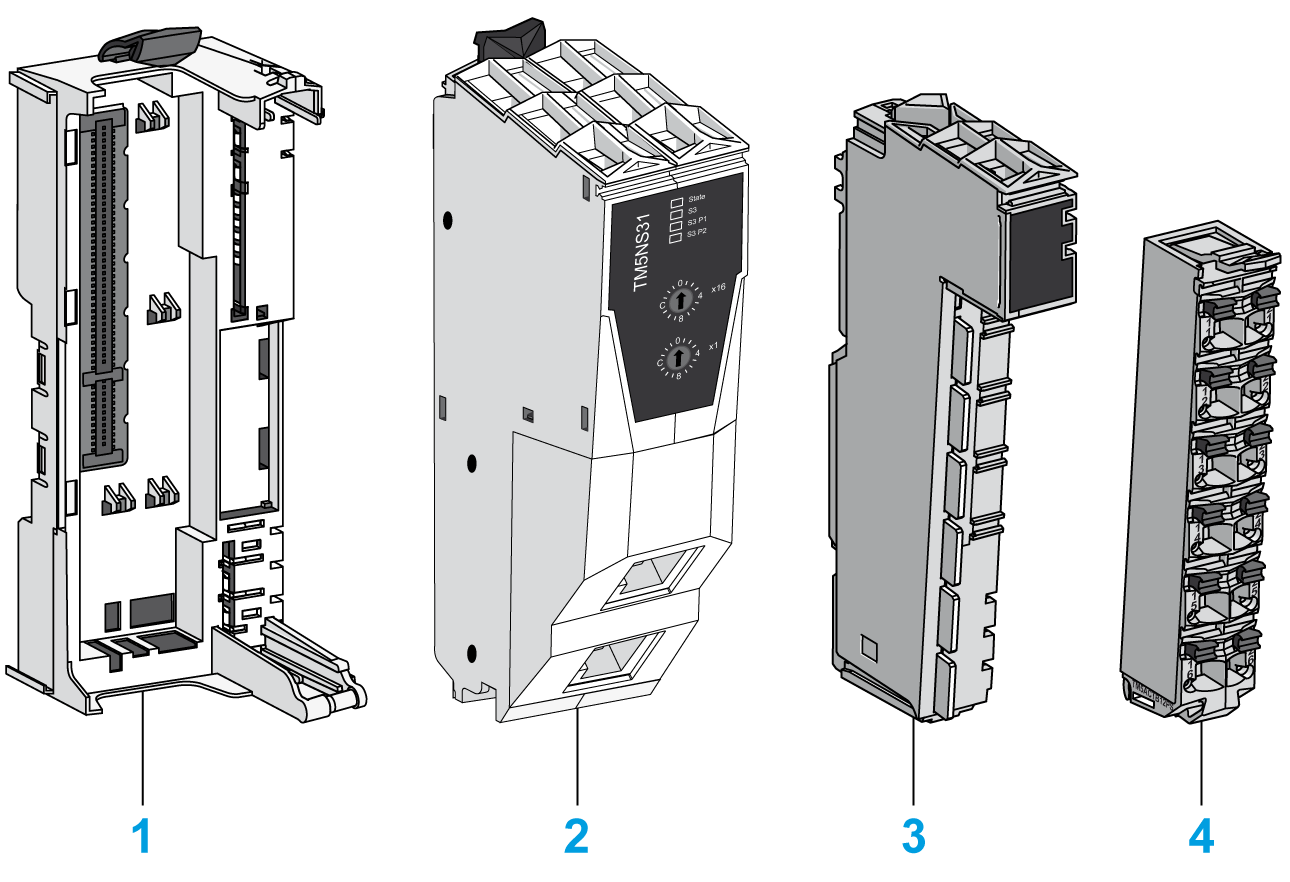 下图显示了组成 TM5 现场总线接口的不同部件: