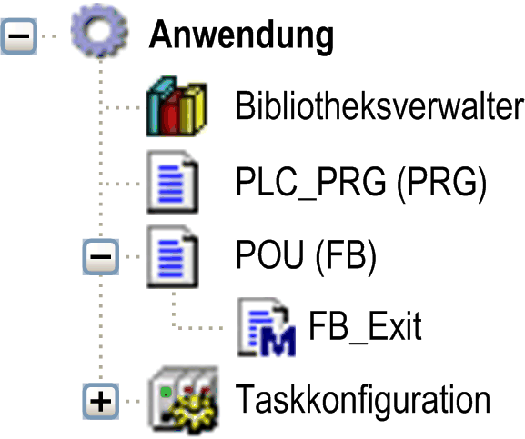 Die Methode FB_Exit wird einem Funktionsbaustein namens POU zugewiesen.
