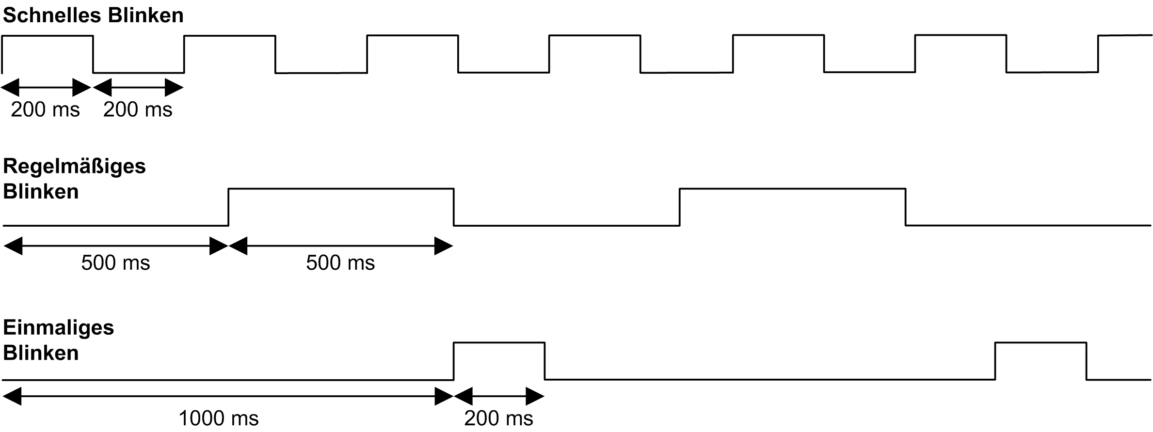 Dieses Zeitdiagramm zeigt den Unterschied zwischen schnellem Blinken, normalem Blinken und einmaligem Blinken: