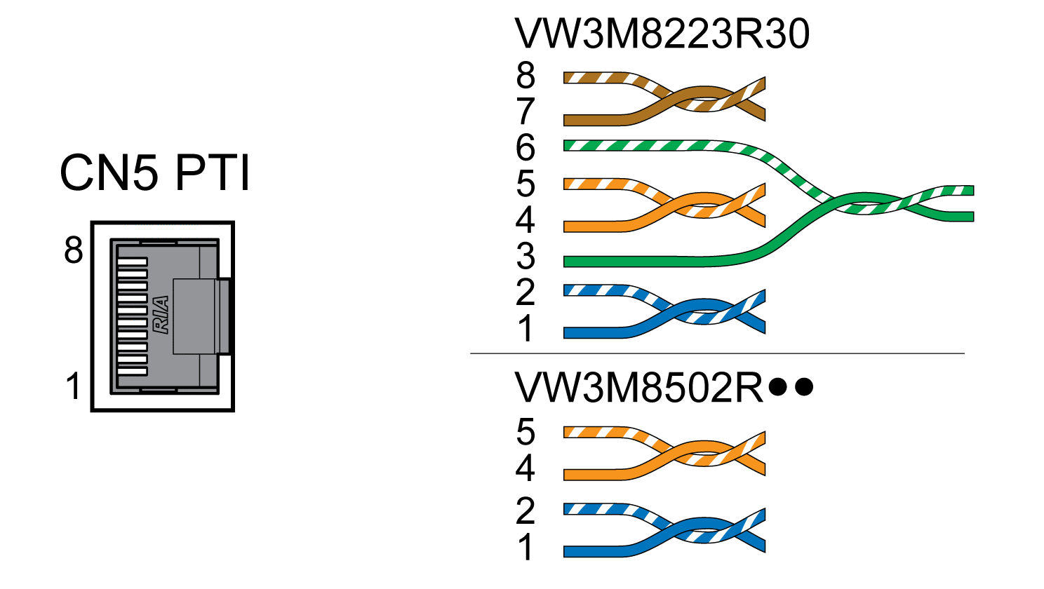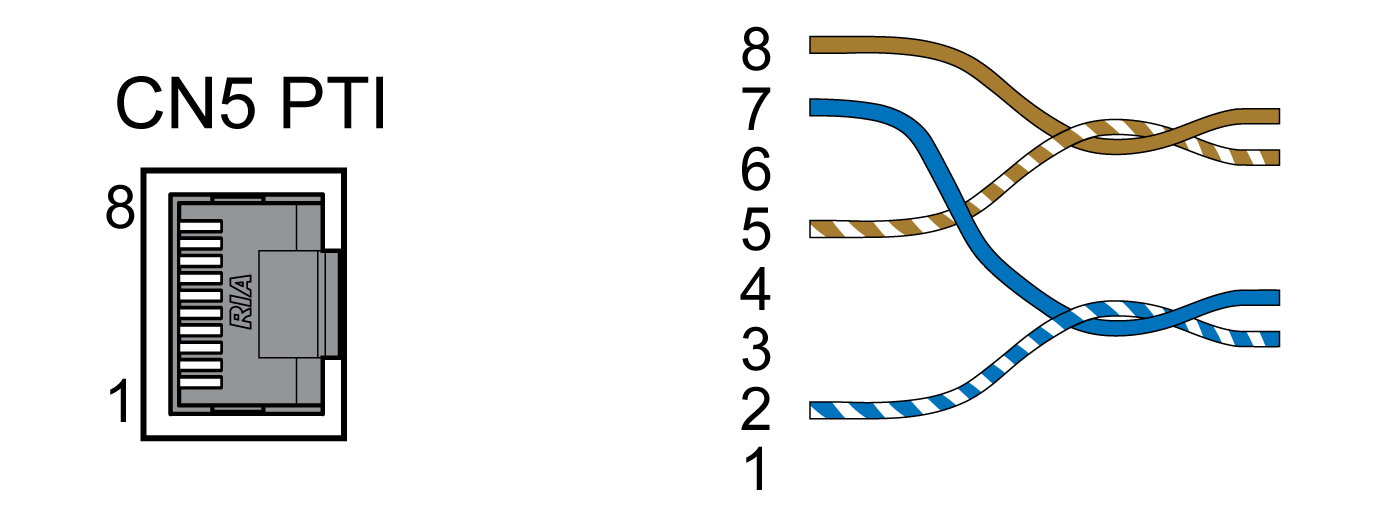 It is possible to connect 5 V signals or 24 V signals, see Input PTI (CN5). Pin assignments and cables are different.