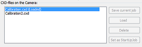The list displays the jobs already stored on the camera. Select a job and use one of the following buttons: