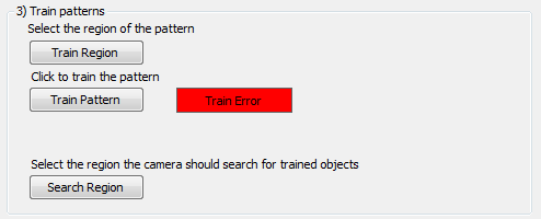 Shows the image received from the camera and the rectangle to train the pattern and to train the search region. |