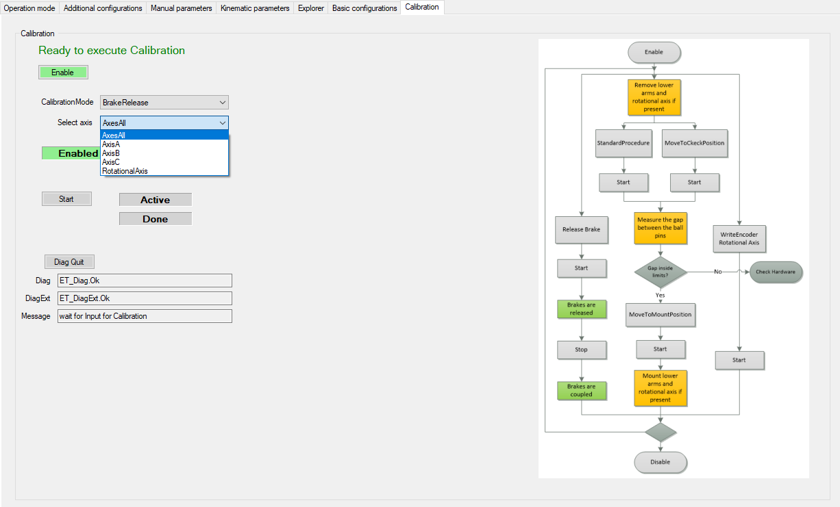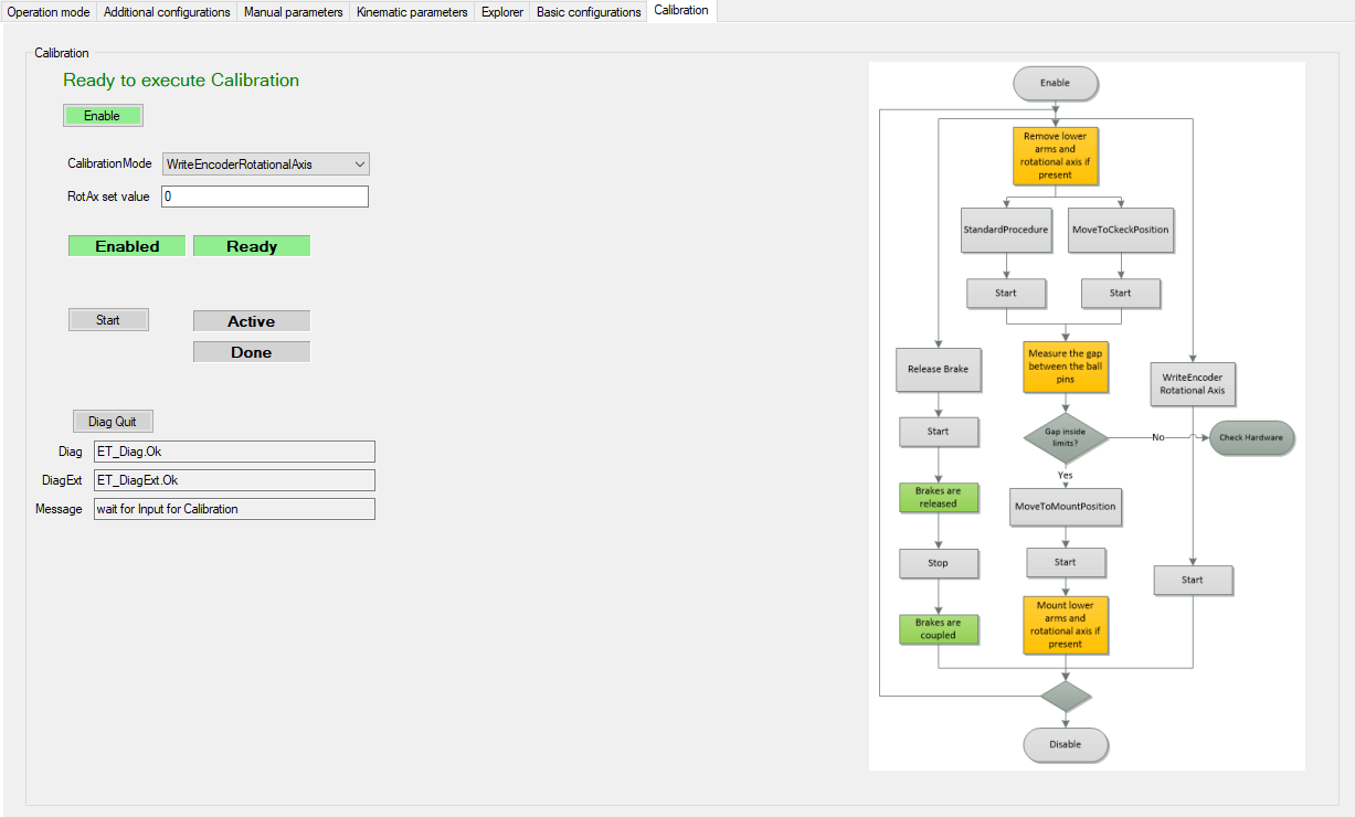 Result: The rotational axis is calibrated. The selected value is written to the encoder of the rotational axis.