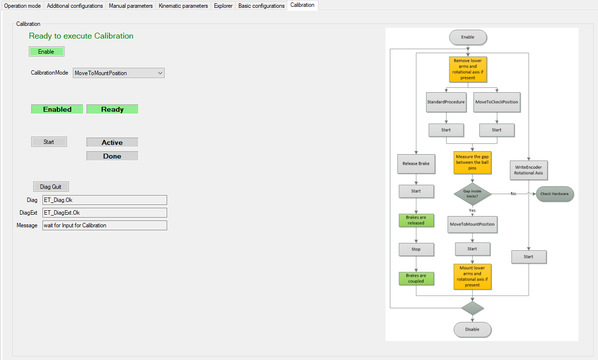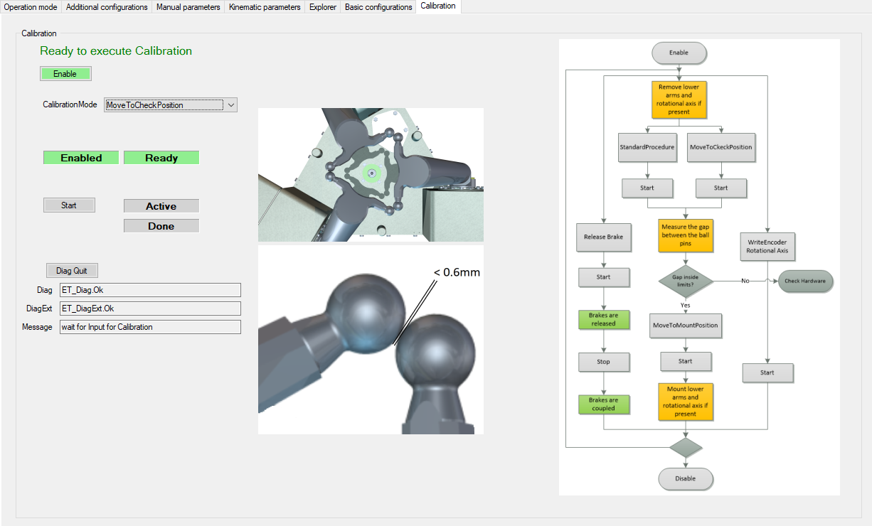 NOTE: When the robot has moved to check position, verify the gap between the ball pins and verify if the value is inside the valid range ( Calibrating the Main Axes).
