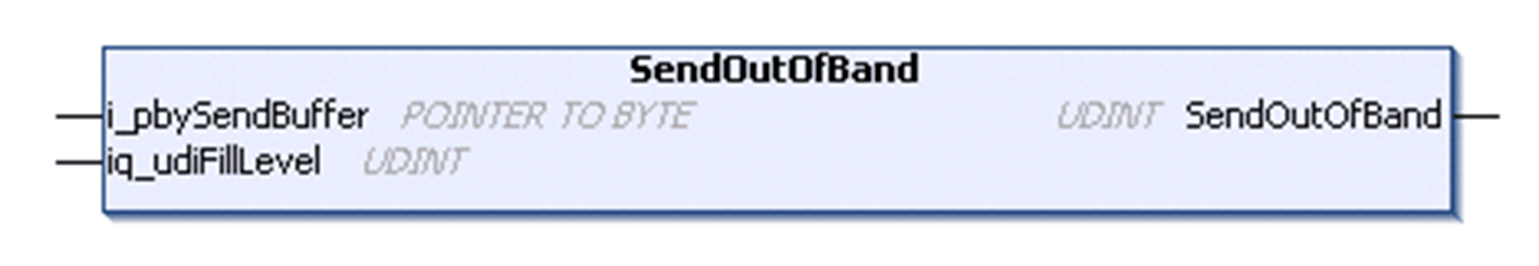 Transmits data as OutOfBand data to the peer. The data is read from a buffer supplied by the application. Returns the number of bytes sent to the remote site as UDINT.