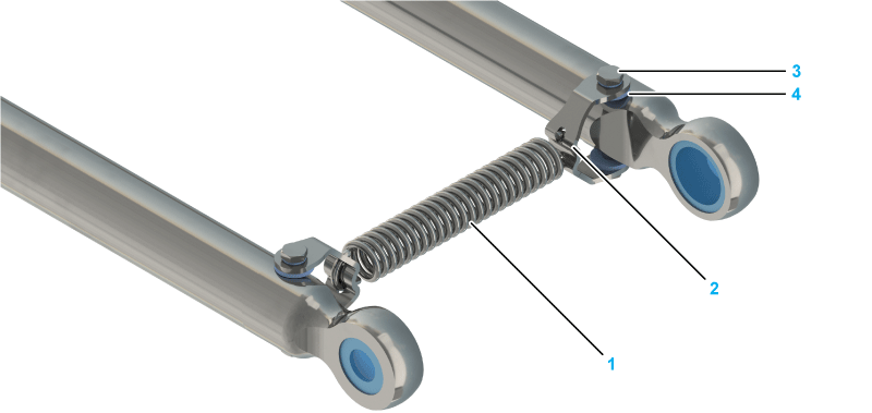 Remove the spring brackets, the bolts (3), and the rolls (4). For further information, refer to Replacing the Springs. |